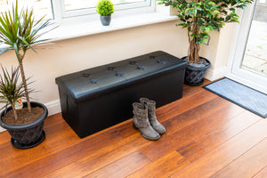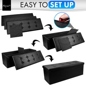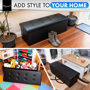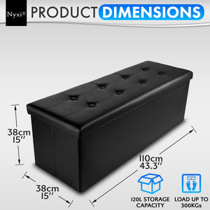 Faux Leather Ottoman Storage Box (Black) - 110 * 38 * 38cm