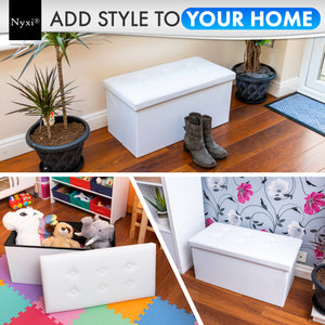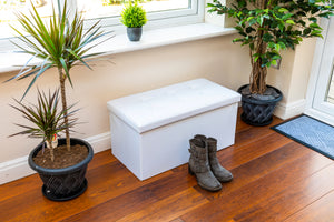 Faux Leather Ottoman Storage Box (White) - 76 * 38 * 38cm