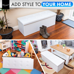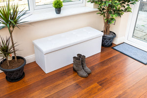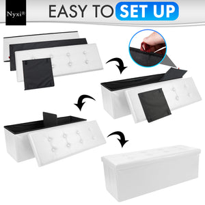 Faux Leather Ottoman Storage Box (White) - 110 * 38 * 38cm