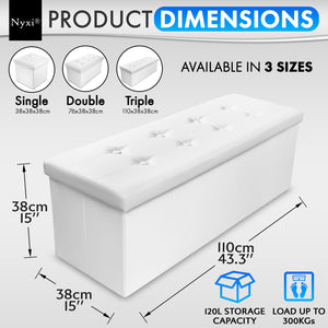 Dimension: 3-Seater (White) - 110*38*38 – 120L storage capacity - Can hold up to 300Kg load